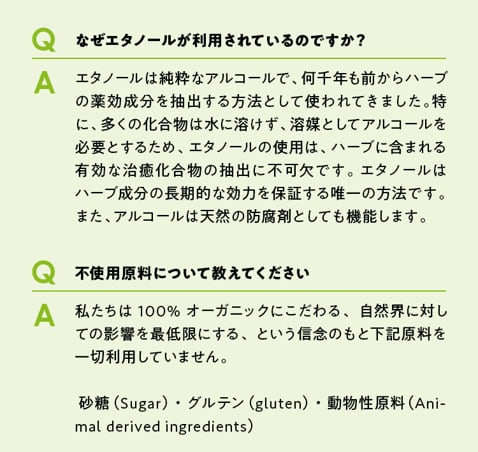 液体だからこそ、ハーブの有効成分がダイレクトに体へ届き、効率よく吸収されます。