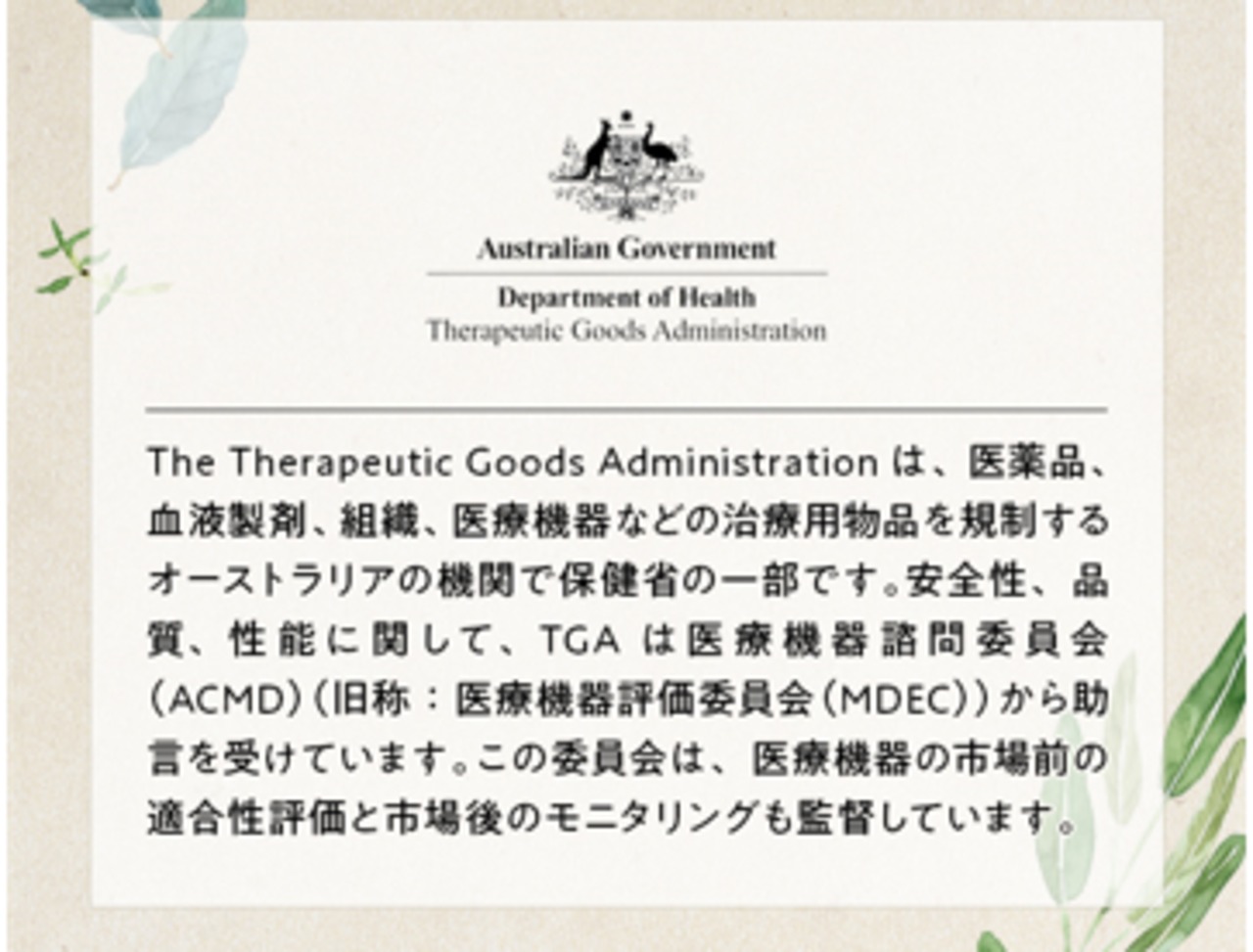 ・TGA(オーストラリア治療製品管理局)